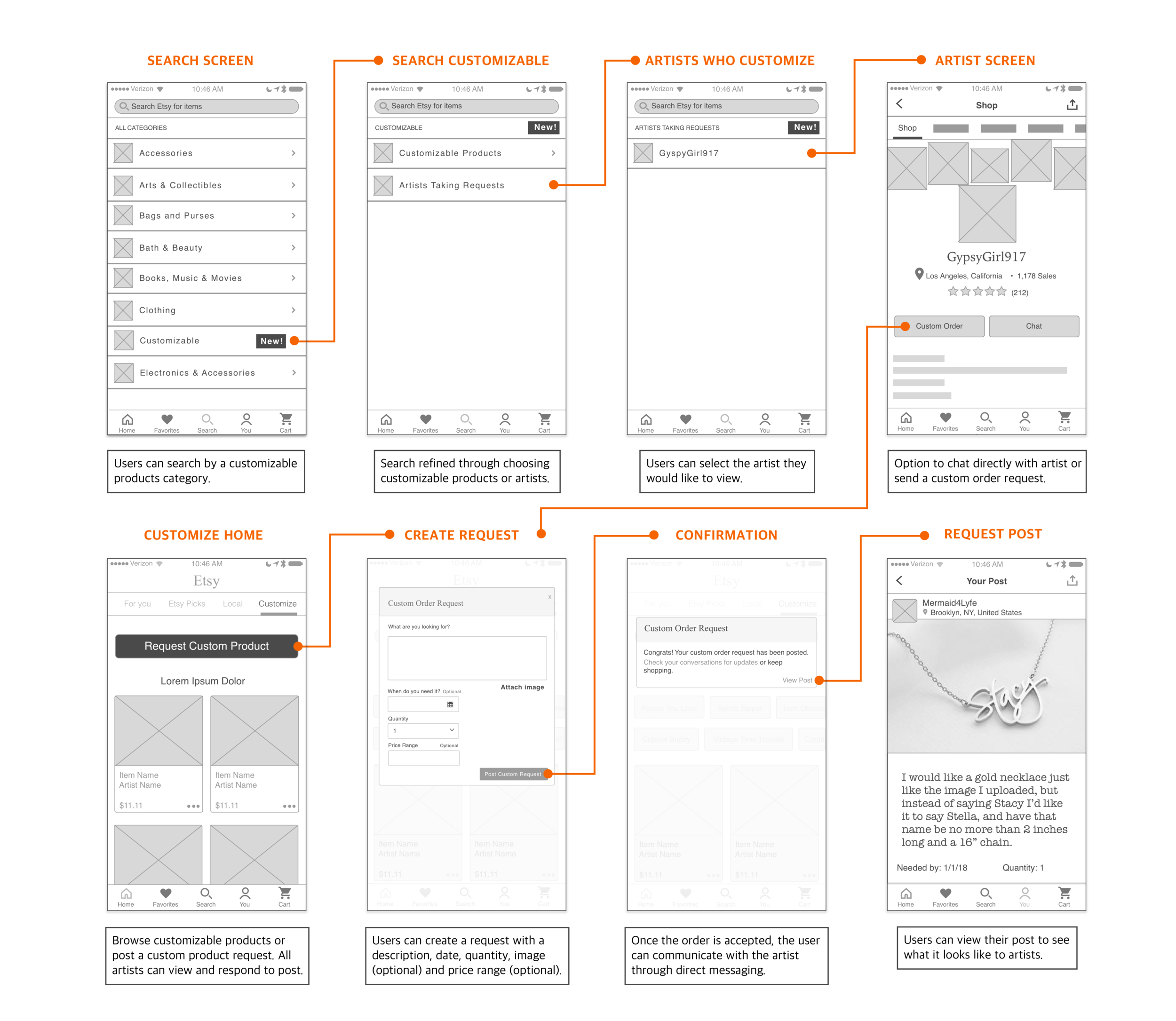 We introduced a feature that enables buyers to submit custom item requests for artists to fulfill to their specifications. This ensures that users can receive products tailored to their unique needs.