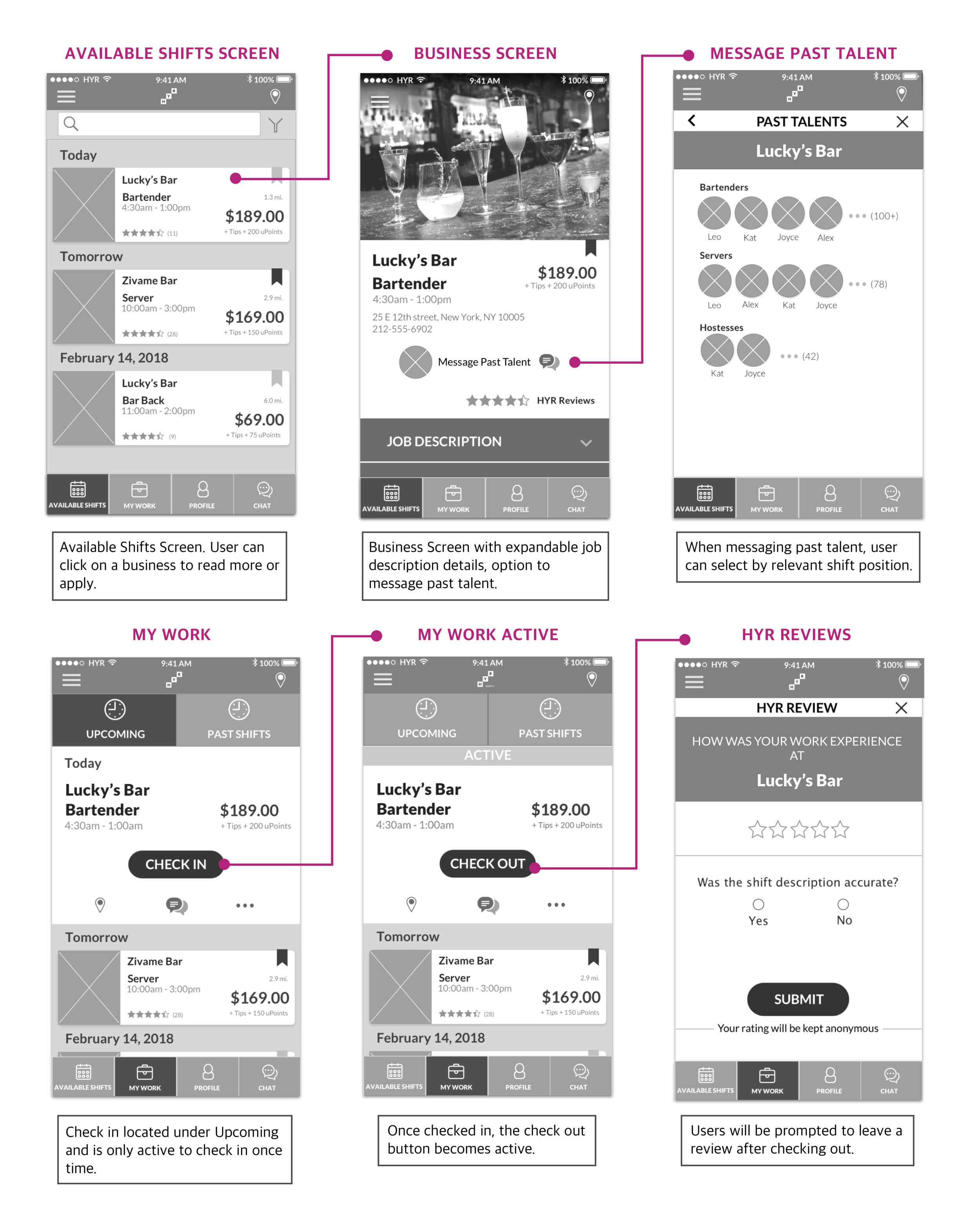 HYR is an app that connects individuals with companies in need of spot labor, helping users achieve their personal and professional goals.